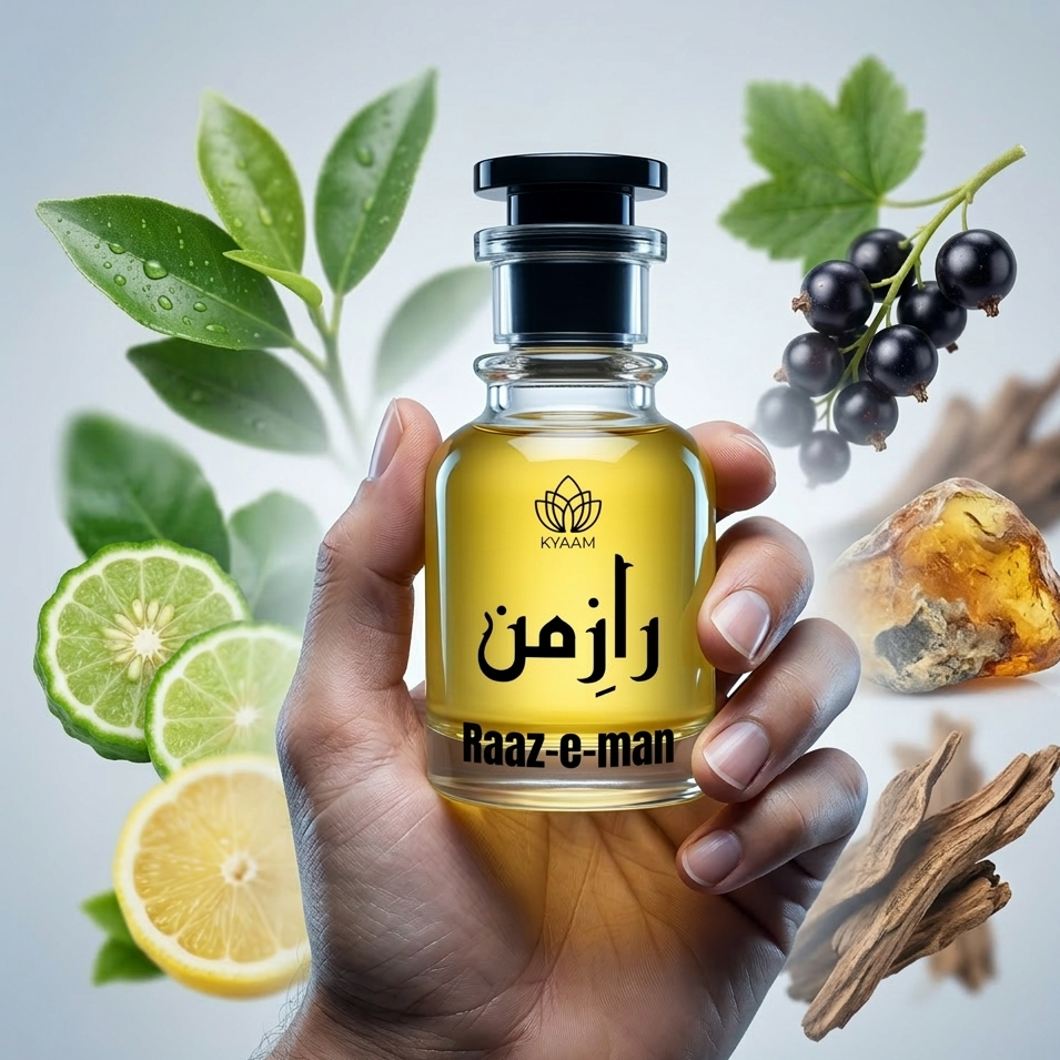 Raaz-e-Man is the essence of quiet strength and refined mystery , an extrait de parfum created for the man whose presence speaks before words ever do. Fresh yet deeply sophisticated, Raaz-e-Man captures the purity of nature and transforms it into a modern symbol of elegance and individuality. Crafted with an exceptional 40% oil concentration, this fragrance delivers a smooth, luminous experience that feels both invigorating and timeless.